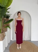Kadın Omuz Askılı Derin Yırtmaç Detay Maxi Boy Elbise