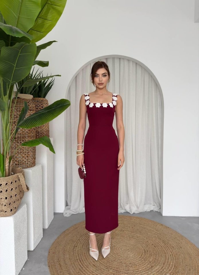 Mıng Çiçek Detaylı Elbise