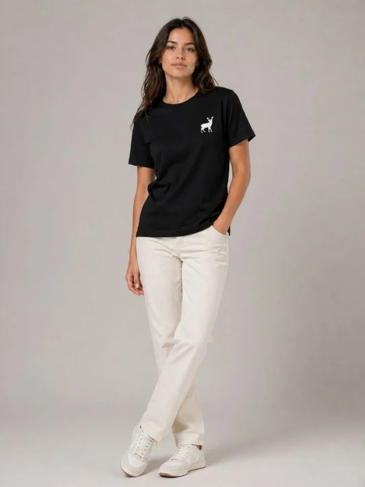 Minimal Geyik Logolu Tişört Bisiklet Yaka Kısa Kol Yazlık T-Shirt – Siyah