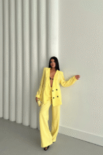 MODAL 4 DÜĞME ASTARSIZ CEKET – PANTOLON TAKIM – Sarı