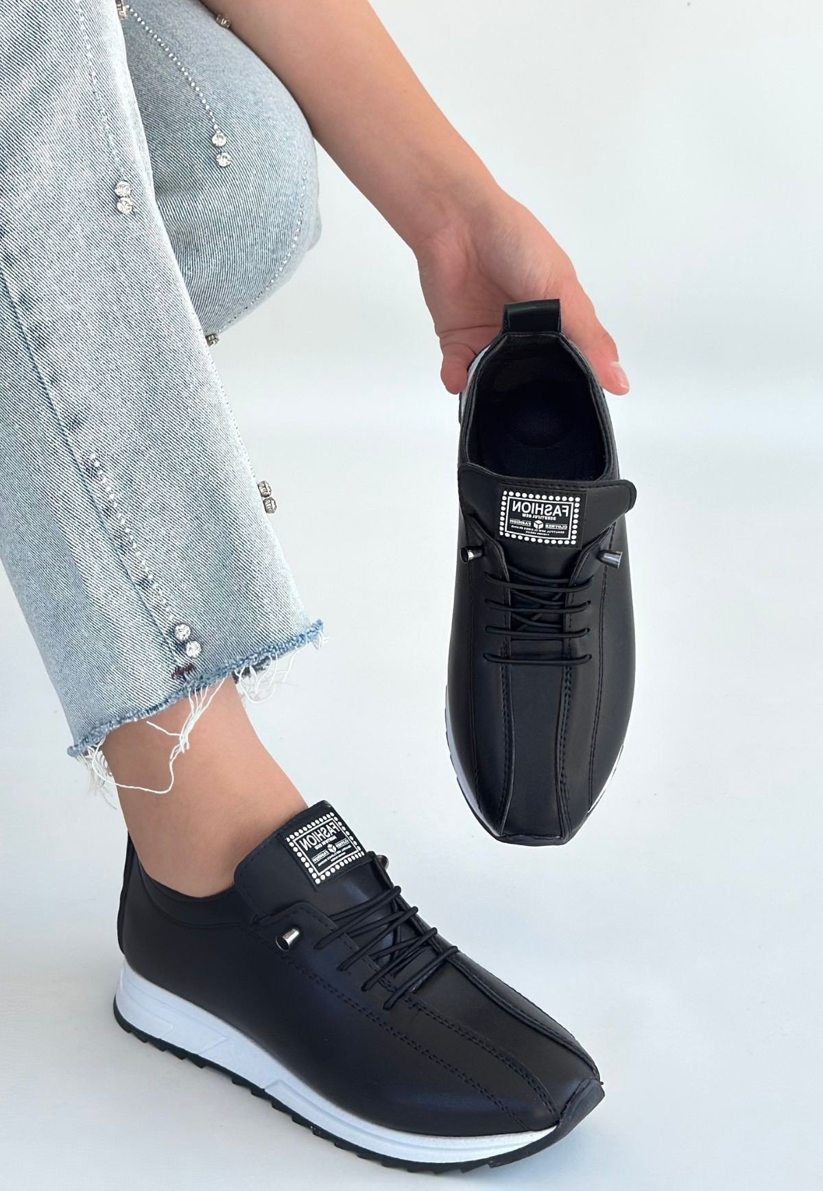 Monya Siyah Cilt Bağcıklı Spor Ayakkabı