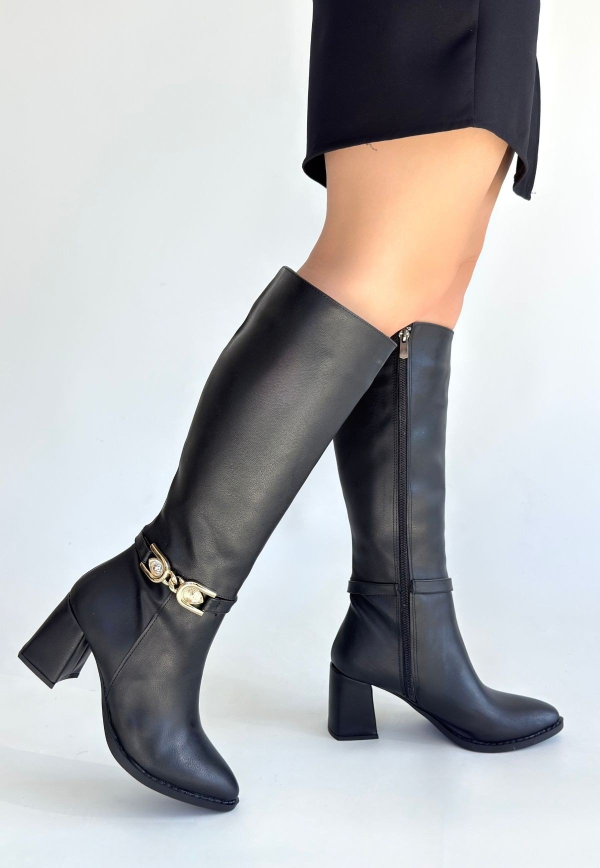 Mooni Siyah Cilt Topuklu Çizme