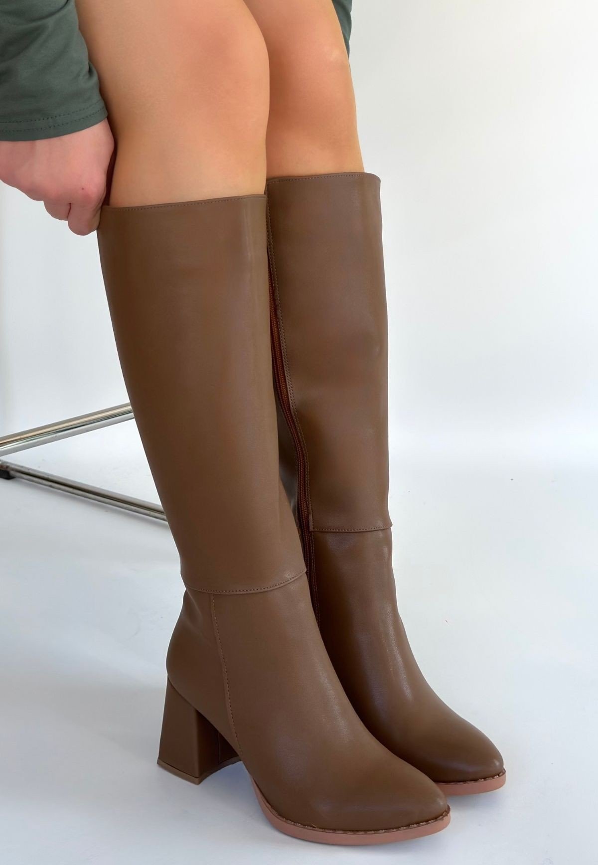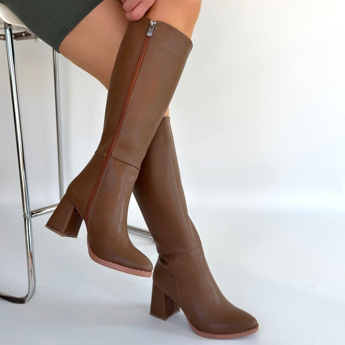 Detay : Topuklu Yandan Fermuarlı Diz Altı Çizme