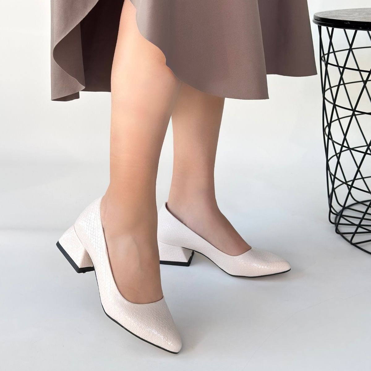 Nitya Bej Baskılı Rugan Topuklu Ayakkabı