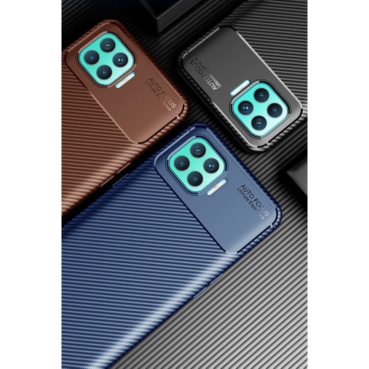 Oppo Reno 4 Lite Kılıf Auto Focus Karbon Kapak – Kahverengi