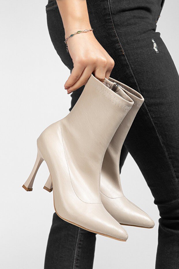 Orjen Bej Cilt Streç Topuklu Bot