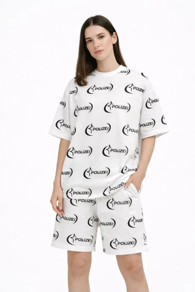 Oversize Ön Ve Arka Baskılı Tişört Şort Takım Rahat Kalıp Yazlık Günlük Kombin – Beyaz