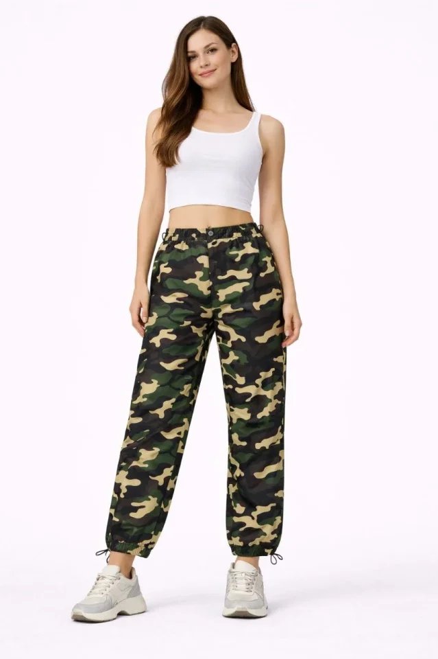 Paraşüt Kumaş Pantolon Bel Ve Paça Ayarlanabilir Lastikli Spor Pantolon – Kamuflaj