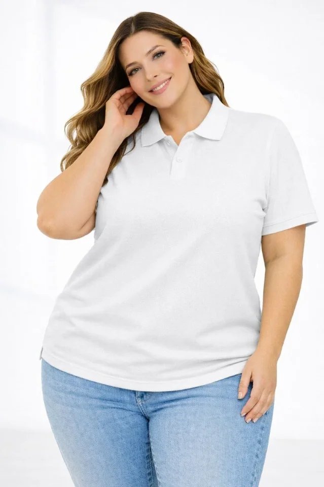 Pike Kumaş Düğmeli Yaka Battal Büyük Beden Günlük Kısa Kol Tişört T-shirt – Beyaz