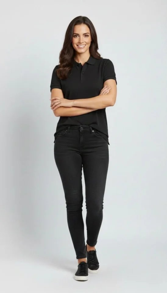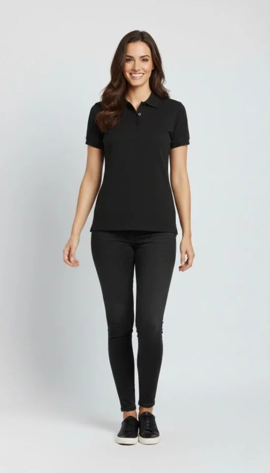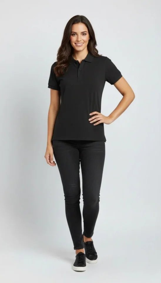 Pike Kumaş Düğmeli Yaka Regular Rahat Günlük Kısa Kol Tişört T-shirt – Siyah