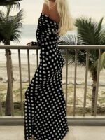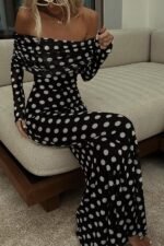 Puantiyeli Tül İçi Astarlı Madonna Yaka Maxi Boy Elbise