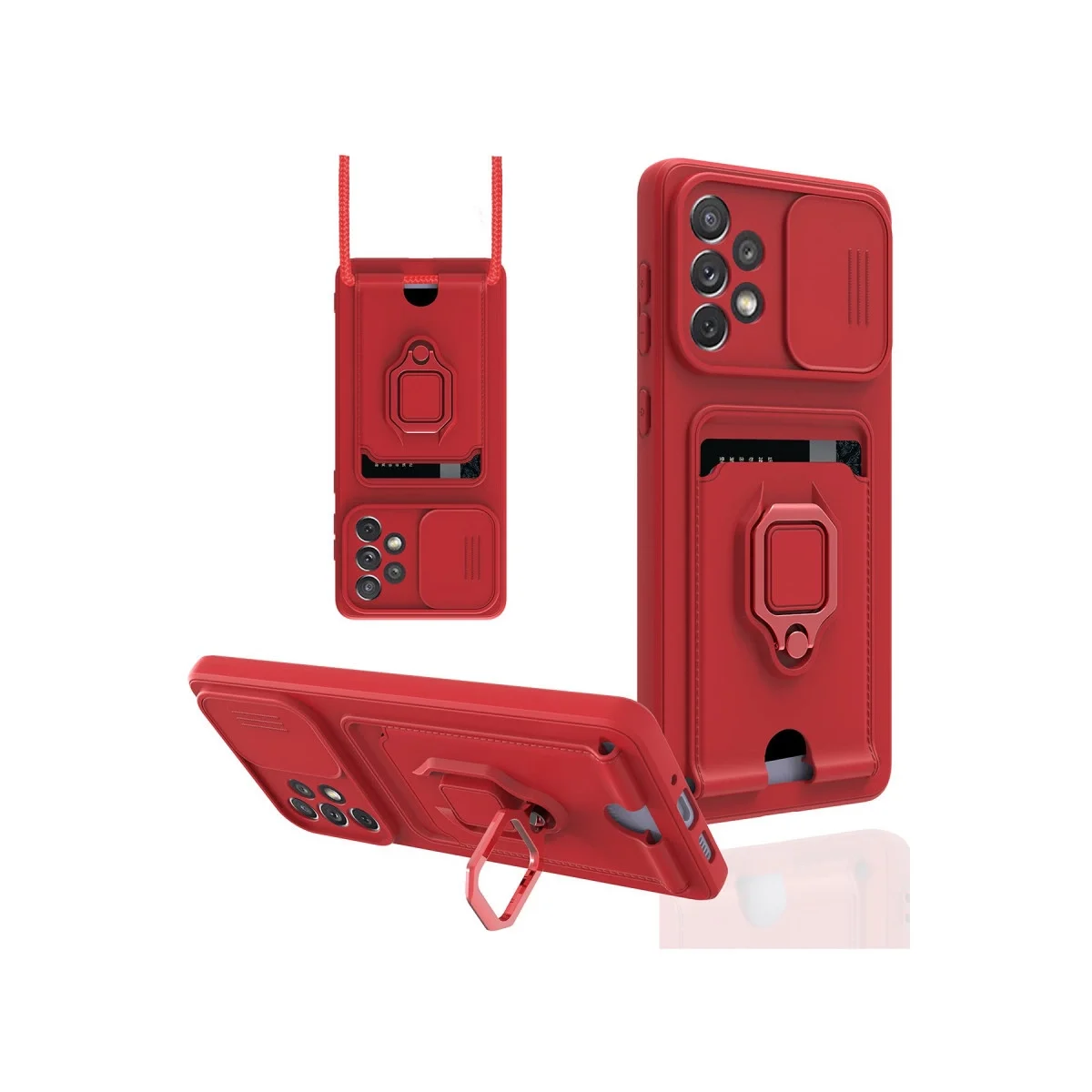 Samsung Galaxy A73 5g Kılıf Zuma Kartvizitli Yüzüklü Silikon – Kırmızı