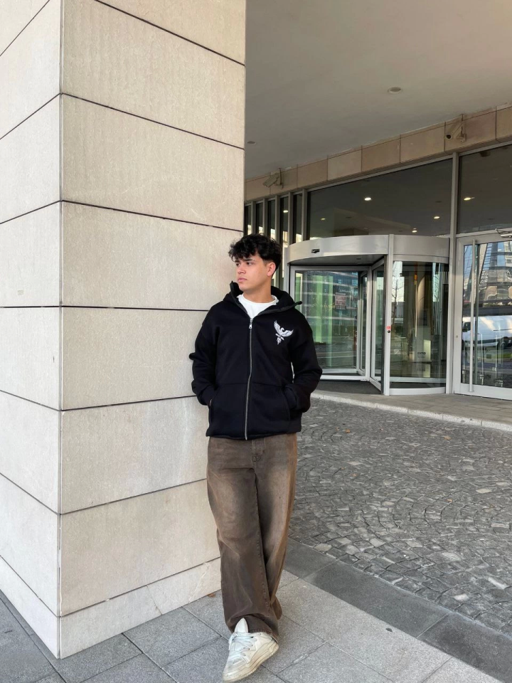 Samuray Kapşonlu ZIP Fermuarlı Kapşonlu SweatShirt – Siyah