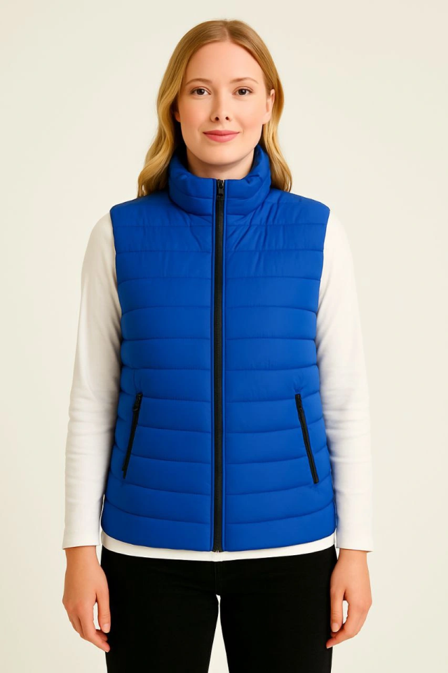 Şişme Fermuarlı Yelek Su Itici Kapitone Astarlı Kumaş Cepli Hafif Kışlık Spor Rahat Kalıp – Saks Mavisi