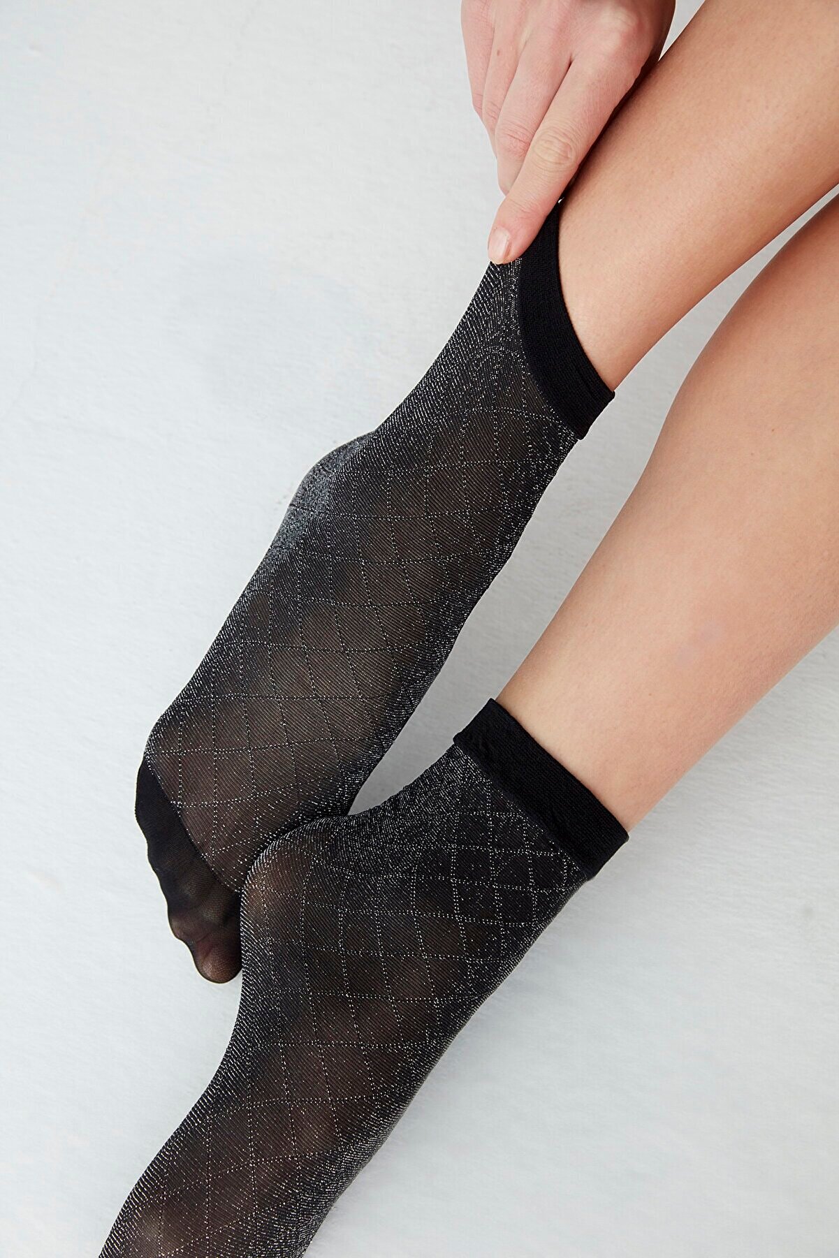 Siyah Simli Desenli Ince Soket Çorap Cross Shine