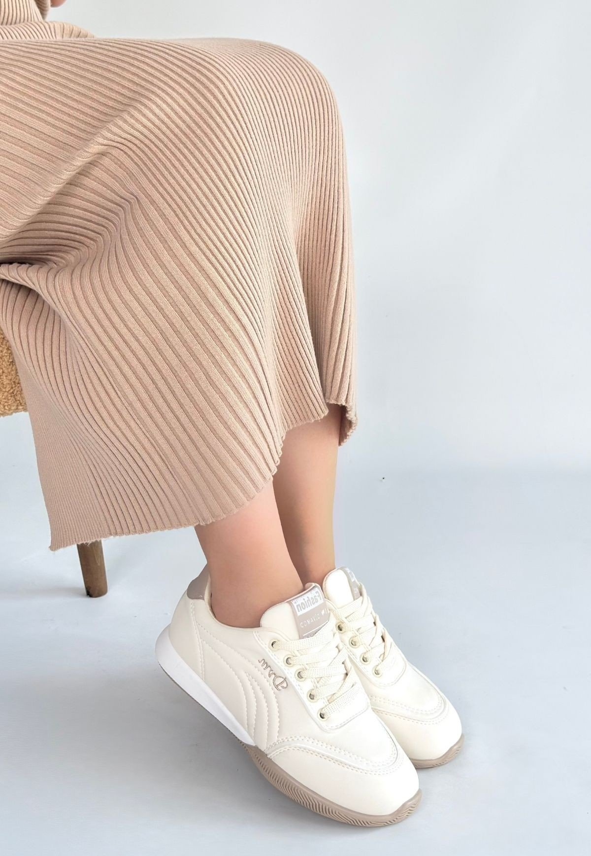 Tawen Bej Cilt Bağcıklı Spor Ayakkabı