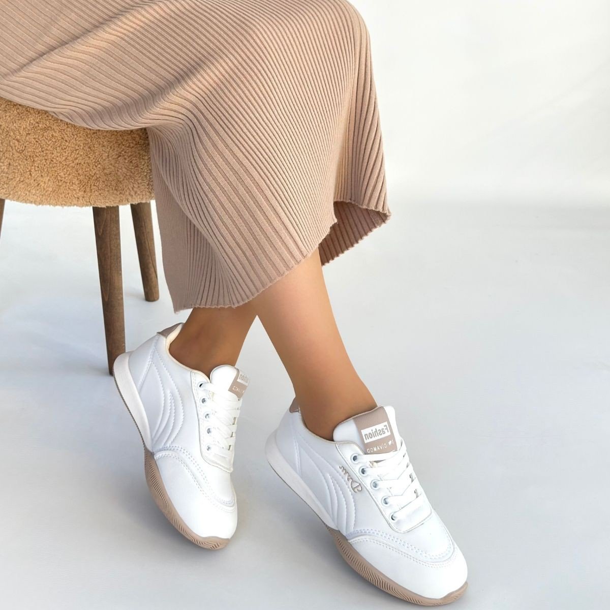 Tawen Beyaz Cilt Bağcıklı Spor Ayakkabı