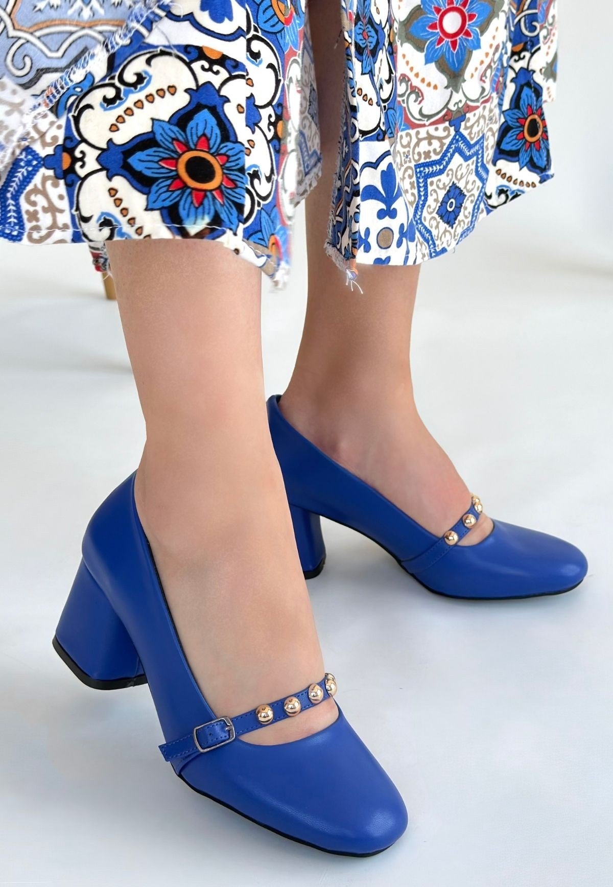 Tino Mavi Cilt Topuklu Ayakkabı