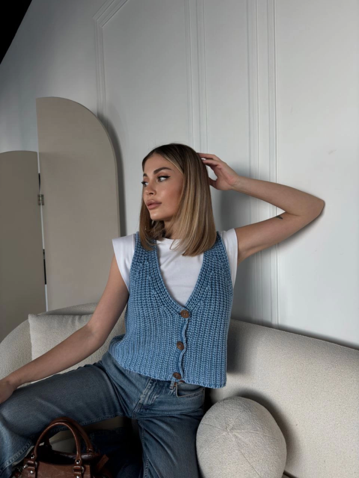Triko Kolsuz Düğmeli Yelek – Mavi