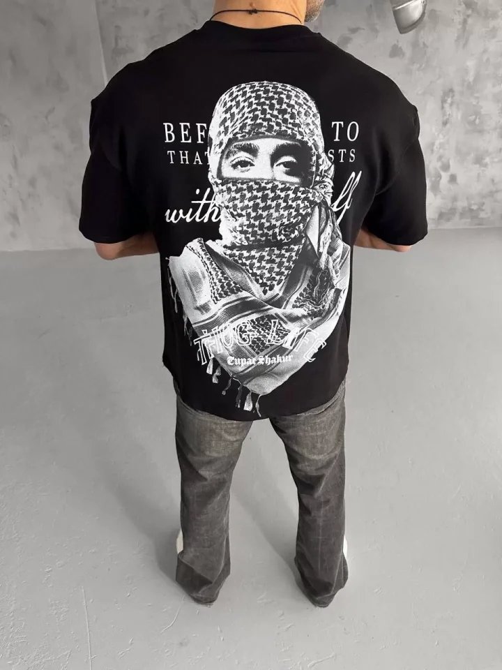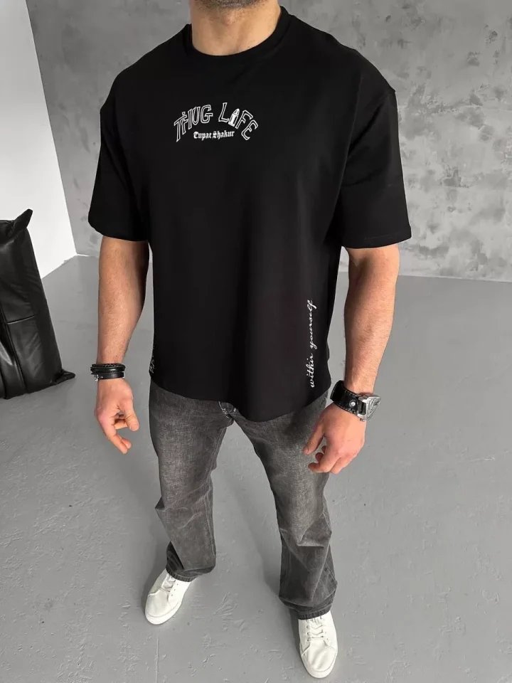 Unisex Baskılı Oversize T-Shirt – Siyah