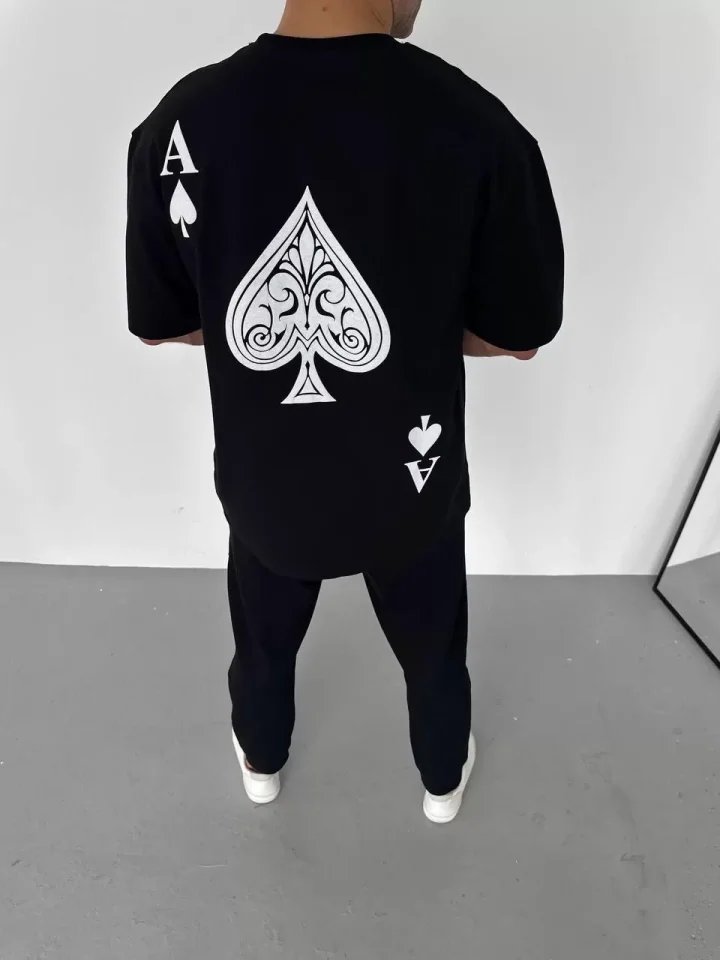 Unisex Bisiklet Yaka Baskılı Oversize T-Shirt – Siyah