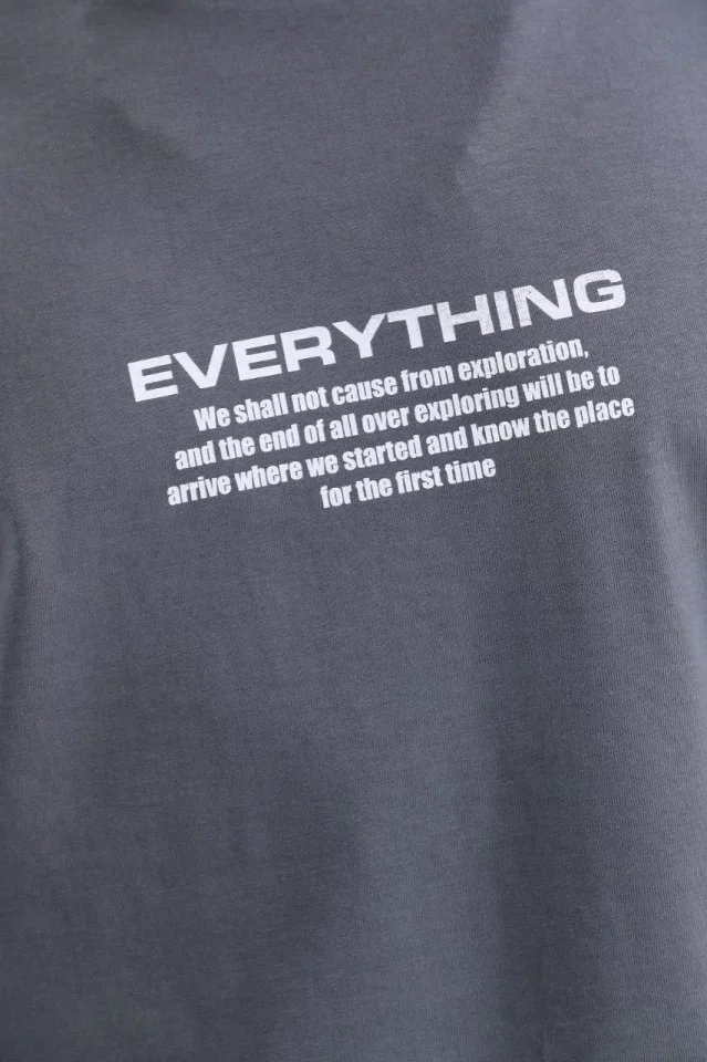 Unisex Bisiklet Yaka Baskılı Oversize T-Shirt – Gri