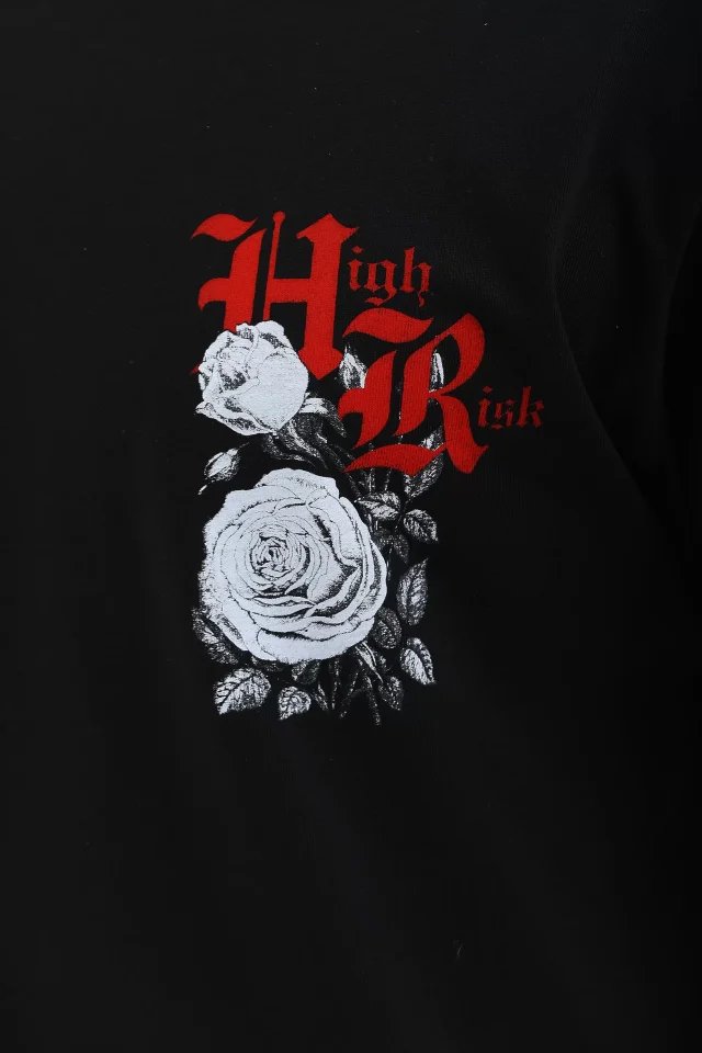 Unisex Oversize Baskılı Bisiklet Yaka T-Shirt – Siyah