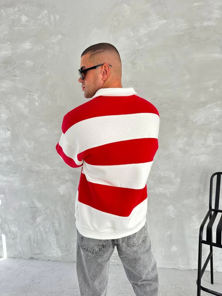 Unisex Üç İplik Parçalı Yakalı SweatShirt – Kırmızı