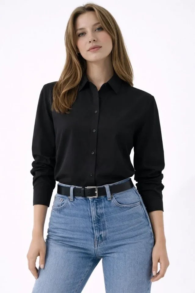 Uzun Kollu Gömlek Düğmeli Klasik Yaka Günlük Ve Ofis Şıklığına Uygun – Siyah