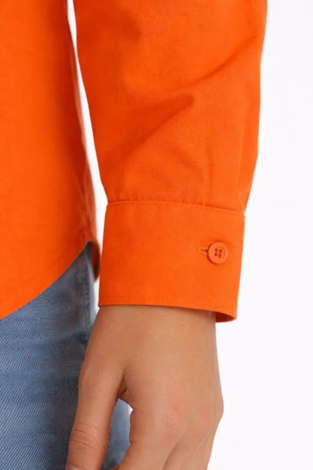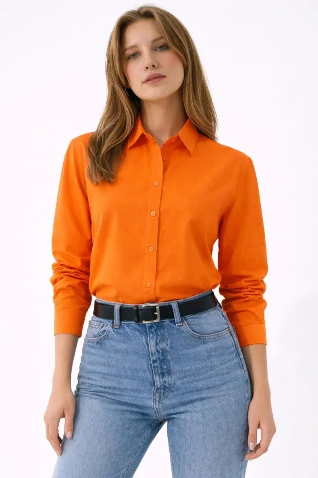 Uzun Kollu Gömlek Düğmeli Klasik Yaka Günlük Ve Ofis Şıklığına Uygun – Turuncu