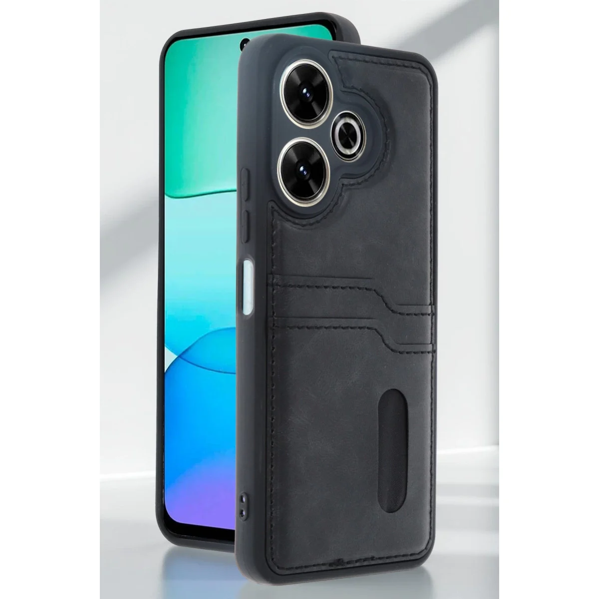 Xiaomi Redmi 13 4g Kılıf Sara Kartvizitli Deri Kılıf – Siyah