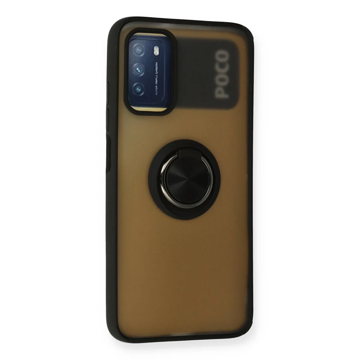 Xiaomi Redmi 9t Kılıf Montreal Yüzüklü Silikon Kapak – Siyah