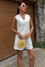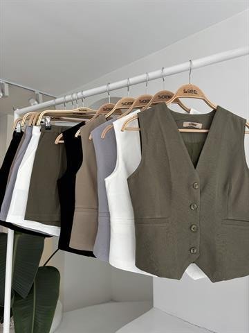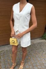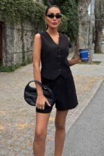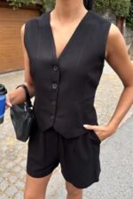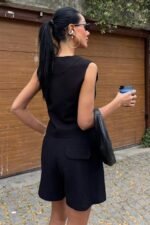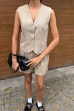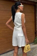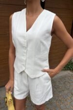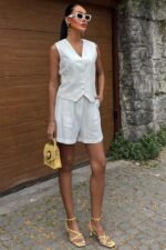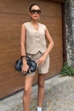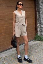 Yelek Şort Flamlı Keten Takım 10133-17
