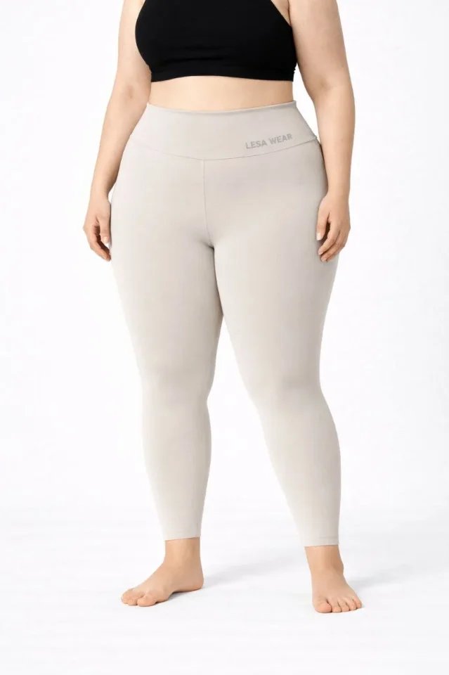 Yüksek Bel Toparlayıcı Likralı Dalgıç Spor Tayt Esnek Battal Büyük Beden – Taş