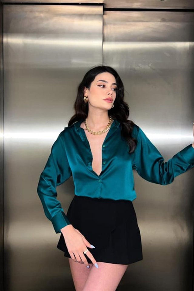 Zümrüt Saten Gömlek
